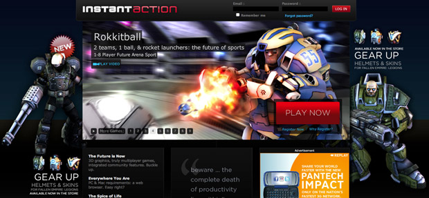 O portal InstantAction inclui vários títulos para serem jogados em rede, não sendo necessário o download de qualquer aplicativo. Pelo que conseguimos saber, estes títulos são verdadeiros vícios junto da sua comunidade e também uma excelente forma de você não mais produzir com qualidade no seu local de trabalho, portanto tenha cuidado! Alguns dos títulos incluem jogos como Fallen Empire: Legions, Marble Blast, Galcon, Rokkitball, Ace of Aces, Lore: Aftermath, entre outros. https://www.instantaction.com/
