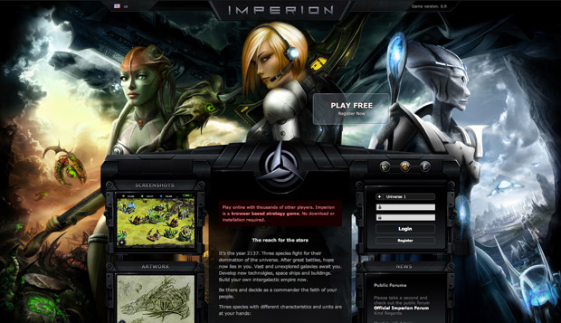 O Imperion é um jogo do estilo especial, baseado no ano de 2137, onde três espécies lutam por dominar o universo. O jogador poderá desenvolver tecnologias, naves espaciais, construções, etc. Aparentemente tem uns gráficos fabulosos e um estilo de jogo bastante divertido. O jogo foi lançado oficialmente em meados de 2009, pelo que é ainda bastante recente. https://www.imperion.org/